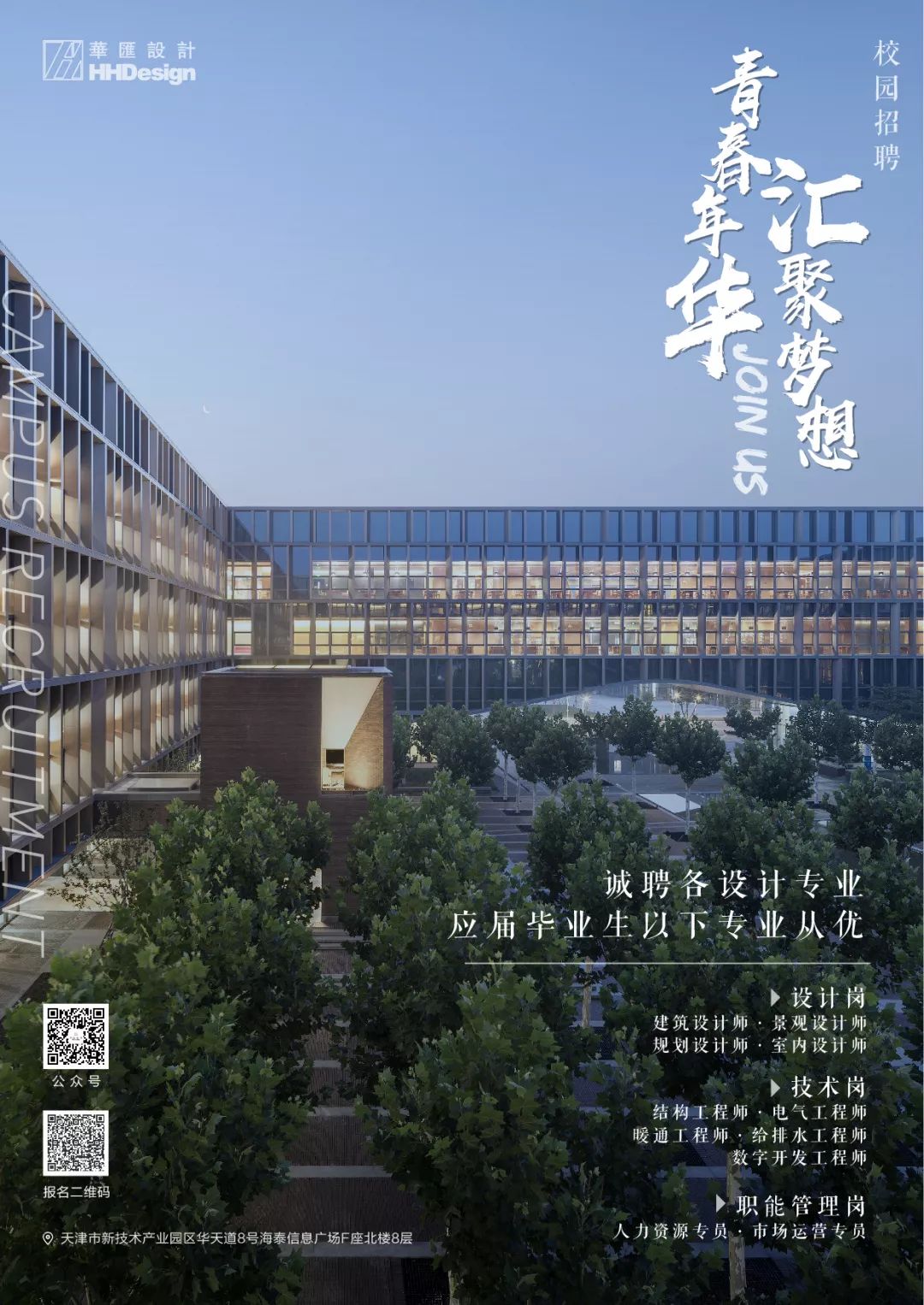 华汇设计HHDesign 2020 校园招聘季![]() 华汇设计 HHDesign 创立于1995年 具有国家建筑、规划双甲级资质 拥有一支超过800人的设计团队 我们致力于 “为客户提供全产业链服务以及产业级别解决方案” 华汇设计 HHDesign 创立二十余年 始终秉承初心 以匠人之心造经典之作 无论环境是否浮躁 我们坚持孜孜以求,静心专注 精于心,勤于技 20+ 的你们,即将踏入职场 20+ 的华汇,此刻正值风华 加入华汇 期待你在这里 绽 放 青 春 ![]() ![]() 招聘职位 设计岗 建筑设计师 景观设计师 规划设计师 室内设计师 技术岗 结构工程师 电气工程师 暖通工程师 给排水工程师 数字开发工程师 职能管理岗 人力资源专员 市场运营专员 在你所热爱的领域 我们都提供广阔的发展平台 对于设计,我们不断探索 以匠人之心造经典之作 天赋与勤奋+平台的广度与大师的高度 打造下一个优秀的你 ![]() 周恺 第八届梁思成奖获得者 全国工程勘察设计大师 天津大学教授、博士生导师 华汇设计HHDesign 董事长、总建筑师 从业三十余年 设计之于我是工作 更是乐趣 心存敬畏 行有所止 尊重自然 融入环境 持之以恒 静心专注 ——周恺 ![]() 黄文亮 华汇设计HHDesign 总规划师 华汇规划营运主持人 向左滑动浏览更多项目图片 华汇设计HHDesign 优秀作品 城市设计、文化教育、科创办公、医疗康养、人文居住、酒店商业、超高综合、轨道交通......在民用建筑设计的各个领域,华汇设计都有极强的市场竞争力,项目遍及全国。 更有竞争力的薪酬制度 丰厚底薪+绩效奖金 毕业生前三年一般薪酬范围12-24万 优秀人才更有机会 进入大师工作室工作学习 ![]() 更广阔的个人发展空间 个人定制的职业规划 专属带教老师 内部培训、大师讲堂、轮岗制度 找到适合你的岗位 ![]() 更自由舒适的办公环境 图书馆、进口图书 最新资料无限阅读 食堂提供温馨的一日三餐 咖啡厅享受香浓咖啡、轻松惬意 ![]() 青春年华 汇聚梦想 我们在这里等你 ![]() 天津市建筑学会旨在繁荣天津建筑文化,促进建筑科技进步,培养建设技术人才,助力天津城建事业发展。 欢迎广大会员关注天津市建筑学会 天津市建筑学会 The Architectural Society of Tianjin ![]()